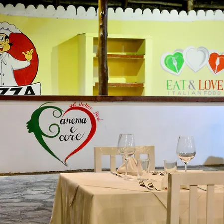 This Zanzibar hotel provides a free buffet breakfast in the restaurant. The Voi Kiwengwa Resort has an à la carte Ngalawa restaurant that serves Italian dishes. The onsite lounge bar features a selection of fresh cocktails. There is a bar serving Italian food nearly a 10-minute drive away.